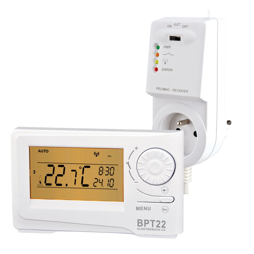 Je určen pro automatickou regulaci topných soustav v rodinných domech a bytových jednotkách s vlastním kotlem (plynové, elektrické). Velký podsvícený displej na vysílači umožňuje ovládání termostatu i za tmy. Navíc, nabízí intuitivní navigaci ve vybraném jazyku (CZ/PL/EN/DE). Přijímač je vybaven systémem samoučení kódu a pamětí E-EPROM, která uchová uložený kód i při výpadku napětí.