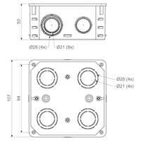 Velké množství průchodů pro zavedení kabelů a trubek.