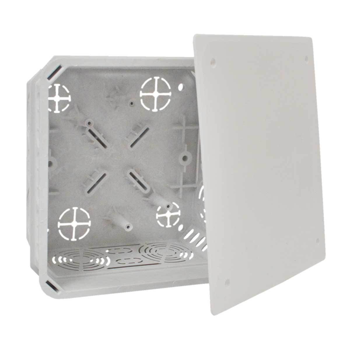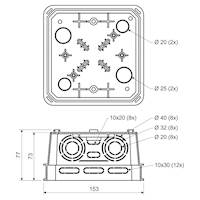 Velké množství průchodů pro zavedení kabelů a trubek. Možnost instalace nosné lišty TS 35. Možnost nastavení víka do horizontální polohy. Možnost vylomení celé bočnice pro snadnější manipulaci s kabely.