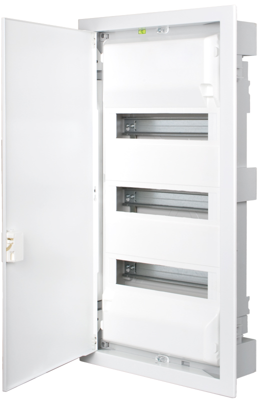 pro zapuštěnou montáž , 850°C neprůhledné plechové dveře, počet řad 3, počet modulů v řadě 14, krytí IP30, PE+N, barva bílá, materiál : ocel-plast,