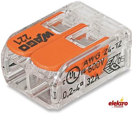 Řada 221 klade důraz na snadnou a pohodlnou manipulaci. Osvědčená pružinová technika CAGE CLAMP® zaručuje nejen snadnou instalaci bez použití nástroje, ale také trvale bezpečný a spolehlivý kontakt. K manipulaci slouží ovládací páčky, na jejichž otevření/zavření stačí jen malé množství síly.